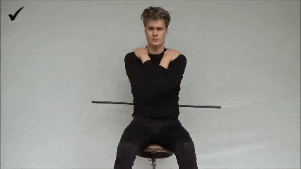 | Practice: | Sit on the balance board with the stick yourself and let the rower take place behind you. Ask him to gently rock the plank back and forth and let him feel the difference when you don't move with the plank yourself and keep in een upright position (feels light) and do move side to side with it (feels heavy). Then let the rower sit on the plank and ask him not to move at first and then to move side to side with the plank. Let him feel the difference between the two situations. Help him learn it by first allowing him to put his elbows on the stick and lean his back against the plank, then only lean his back against the plank, and finally sit loosely on the plank. |