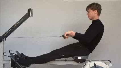 A rower who is sliding under his shoulders (red) compared to a (blue) rower that slides right (www.rowanimation.nl).