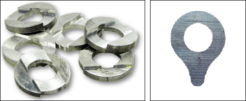 Two types of aluminium adjusting washers exist, suitable for adjusting the stern pitch and suitable for adjusting the outward angle. The washers start at 0.5 degrees and go up to 3 degrees in steps of a half degree. When placed both above and below (in the opposite direction of the top washer!), four are needed per oarlock pin (two for the stern pitch and two for the outward angle) and therefore eight per rowing place. An excellent and durable but expensive solution, because these washers are not cheap.